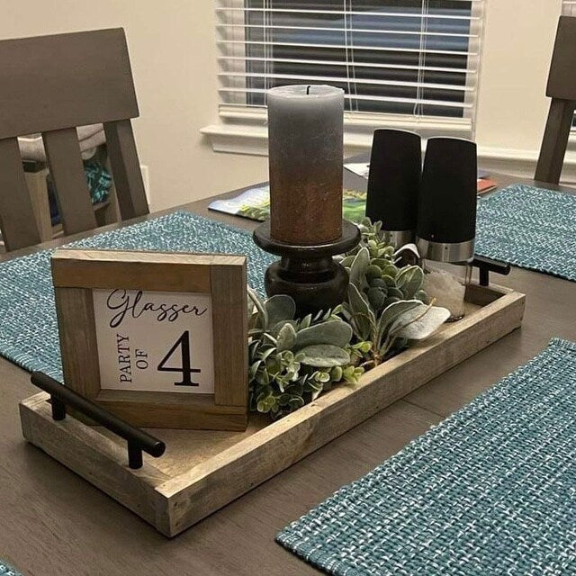 *Select a stain color to match your theme or style. Handle colors offered are; black, gold or silver. We can also create a tray for you with no handles, just request it instead of the handle color in the customization box (no holes will be drilled either).