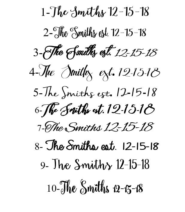 -As a small family business, we work hard and do our best to ship out beautiful, personalized items. Much of the time handmade/hand painted for you. So please understand there is not much we can do about issues related to wood grain variation, wood characteristics on items (ex; knots, natural wood slits, etc), variations in shading on items, color variations, etc. Each piece is unique and different. None will match photos identically. Due to the handmade nature ALL dimensions are approximate and may vary slightly from advertised dimensions.